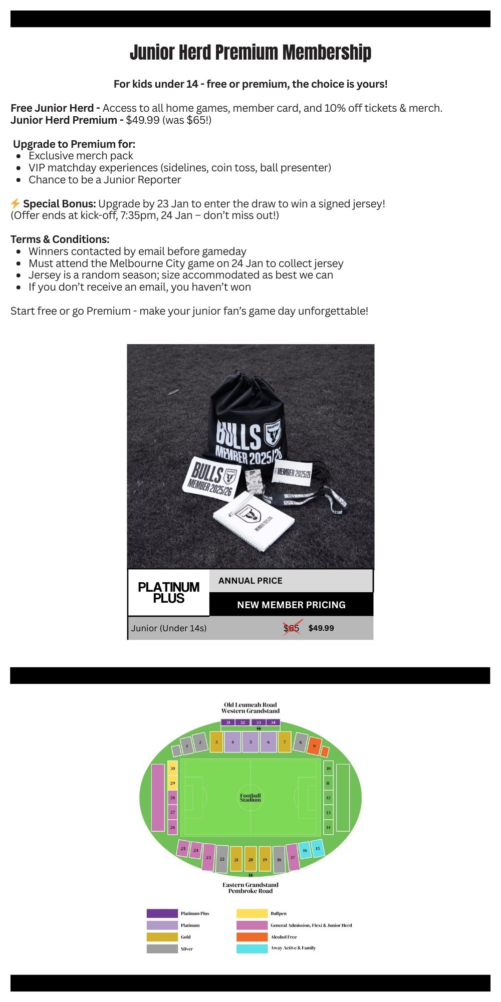 *Important: All Junior Herd members must present a valid physical or digital pass for stadium entry. Members without a pass will unfortunately be required to purchase a ticket to the match.